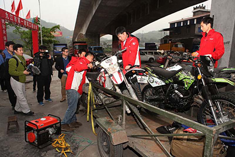 4月22日早上7點50分,總經(jīng)理余國華再次接到董事長龔大興傳達的政府辦公室通知精神:為爭取黃金72小時救援時間,必須根據(jù)受災(zāi)地區(qū)的特殊地理環(huán)境需要,組裝加派一批越野摩托車,用于打通救援生命線。