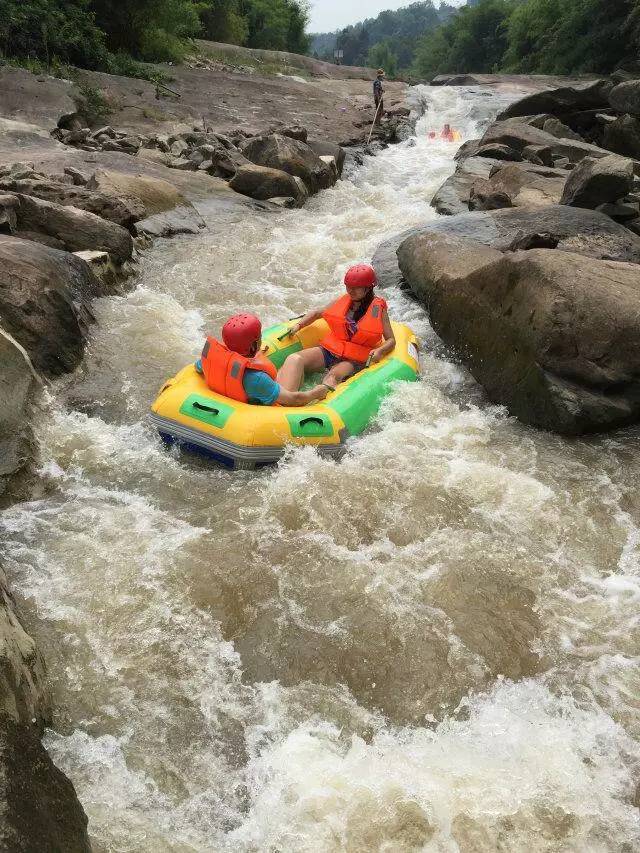 第二天,激情漂流開(kāi)始了。組辦方也是頗費(fèi)心思,一男一女搭配乘坐一艏船,戴上安全帽,穿上救生衣,拿著船槳,出發(fā)了。最高18米的落差,一個(gè)急速俯沖,各種驚聲尖叫層出不窮、連續(xù)不斷。漂流途中更是刺激無(wú)比,一不小心就會(huì)遭遇埋伏,請(qǐng)多人拿著頭盔、漿、瓢、盆各種武器,冰涼的河水鋪面而來(lái),潑水的人笑哈哈,被潑的人哇哇叫,被潑得分不清東南西北。各種潑水,各種翻船,輪番上演,大家玩得不亦樂(lè)乎。