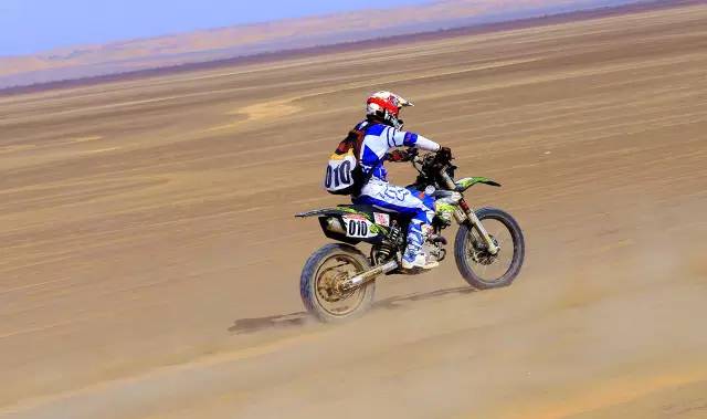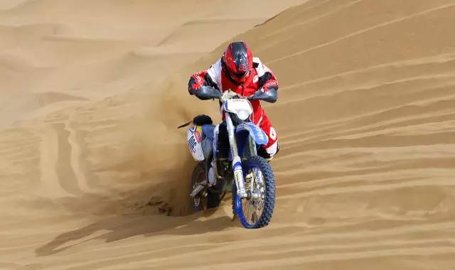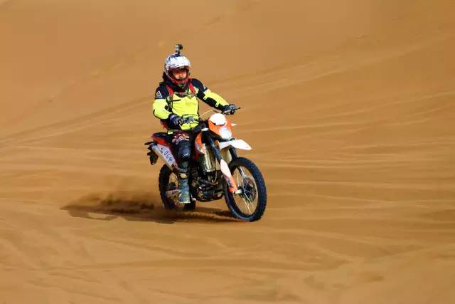 是的,在沙漠里根本辦法好好騎車,想要在沙漠里騎得快,要訣有兩點:別減速、看準路線,油門加大了后輪會瞬間陷下去,換擋慢了油門遲滯也會陷下去,減檔時發動機制動力起作用又會陷下去,還讓不讓人好好騎車了?