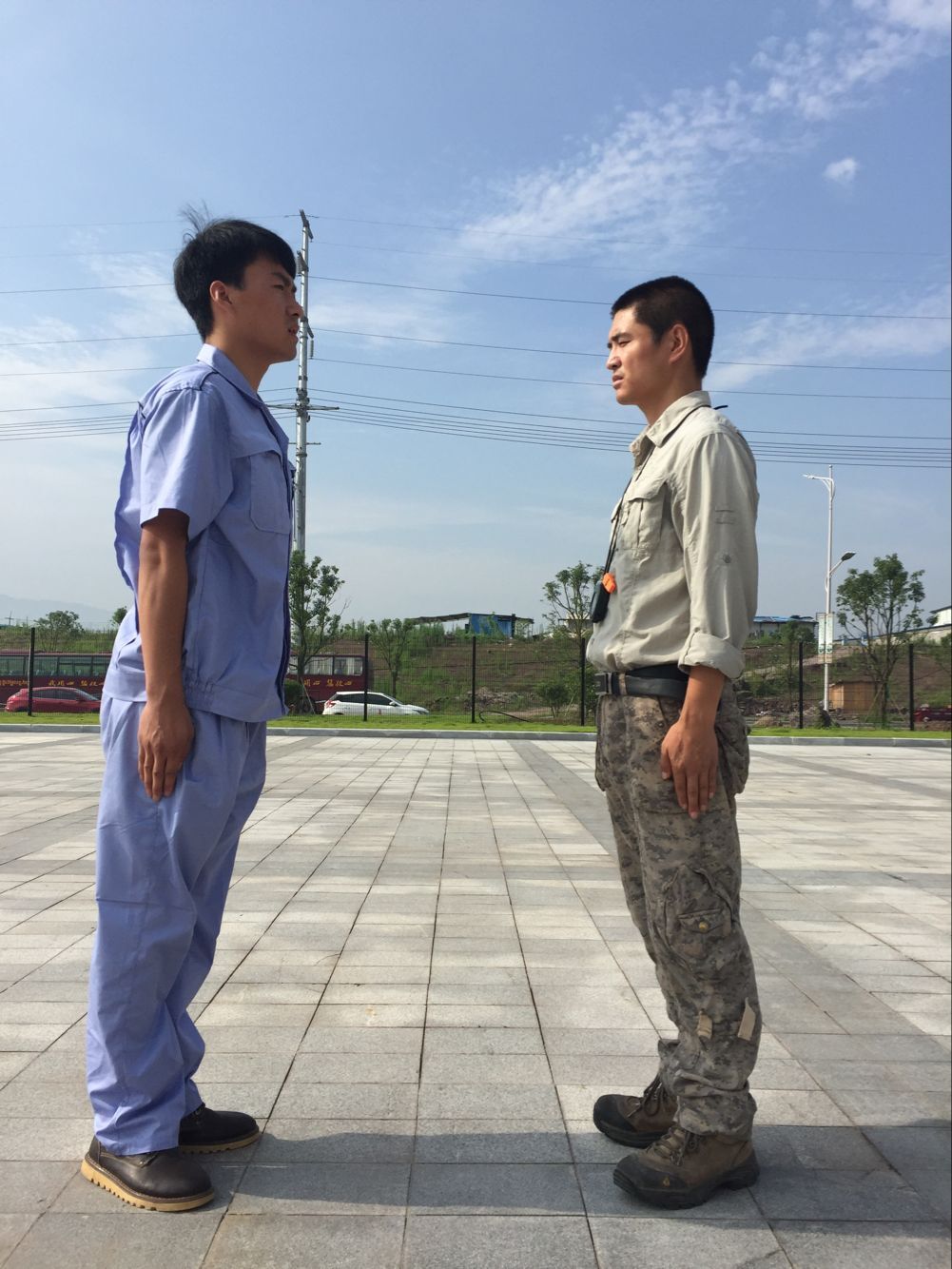 (教官對身體不適的員工進行場外輔導)