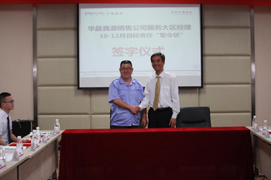 剛剛獲得任命的12個服務大區經理懷著滿腔熱血,在雄壯的音樂中,分別簽訂了《2016年10-12月服務大區經營目標責書》,一聲令下,一冊紅本,承載著新的使命和責任。
