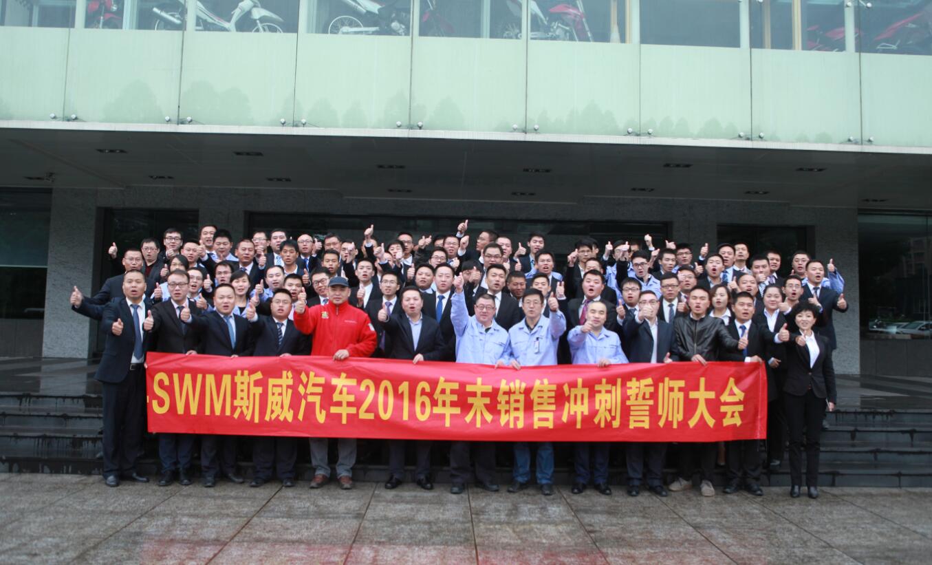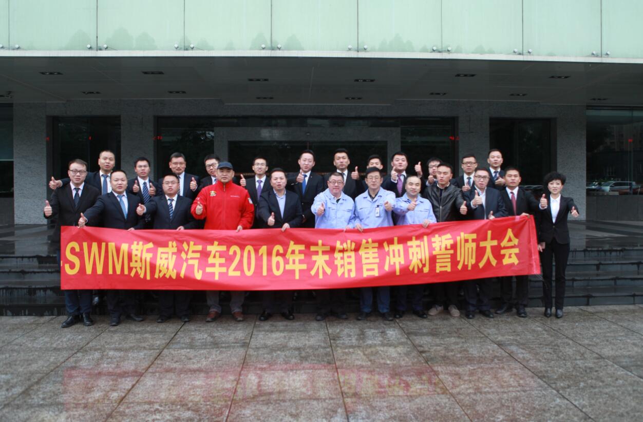 2016年的腳步已接近尾聲,斯威人為了年度目標而沖刺,人人責無旁貸。2016年10月29日,SWM斯威汽車2016年末銷售沖刺誓師大會暨11月、12月渠道開發目標、啟票目標責任書簽訂儀式在含谷生產基地隆重召開。