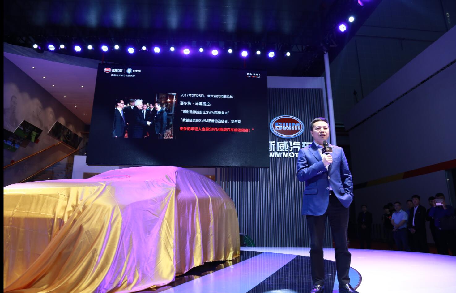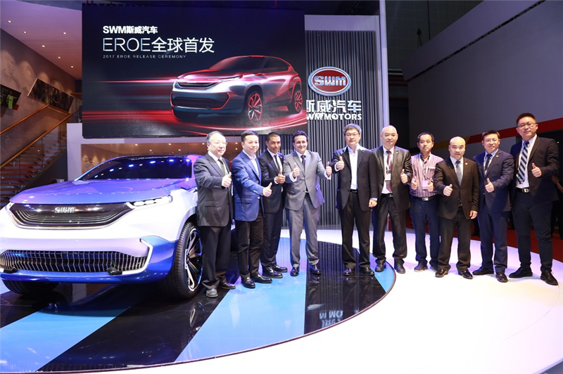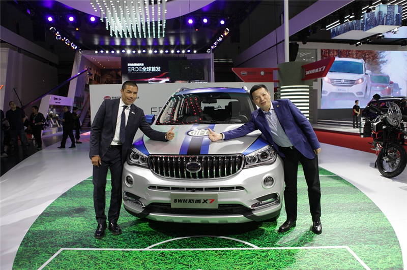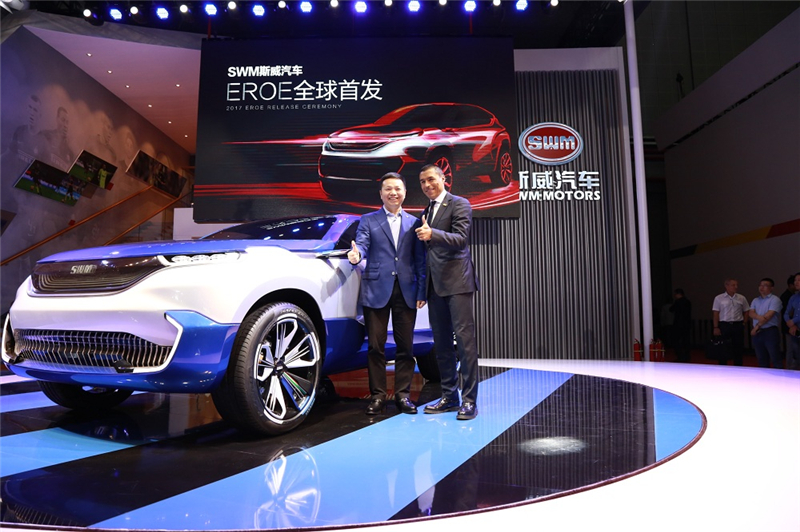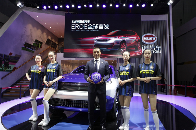 4月19日,以“崛·啟 贏未來”為主題,SWM斯威汽車攜全球首發車型EROE概念車(中文名:俄洛伊)、SWM斯威X7自動擋和SWM斯威X3,在第十七屆上海車展首度震撼登場。國際傳奇足球巨星,國際米蘭名宿科爾多巴從意大利直飛上海參加了SWM斯威汽車全球首發概念車EROE的發布會,在全世界觀眾面前共同演繹了一場汽車與足球的饕餮盛宴。