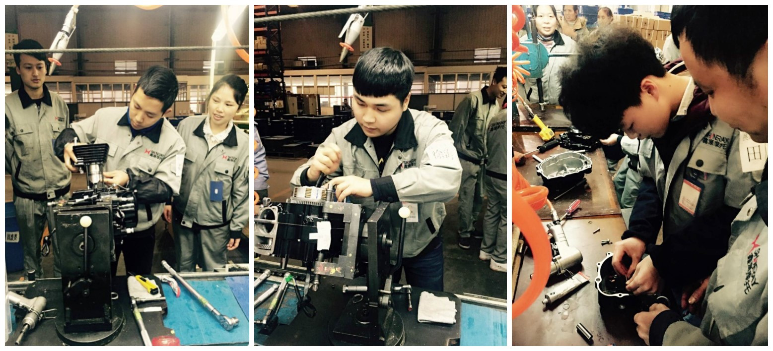 走進比賽現場,我們看到,每一個小組成員都高度集中精神,大家分工明確,從挑選零件到檢查裝配工具,再到組裝部件等復雜裝配流程,都能夠一氣呵成,連額頭上留下的汗水也無暇顧及。比賽不僅考驗了我們員工的應變能力,更檢驗了我們員工在平時工作中的熟練程度及品質意識。