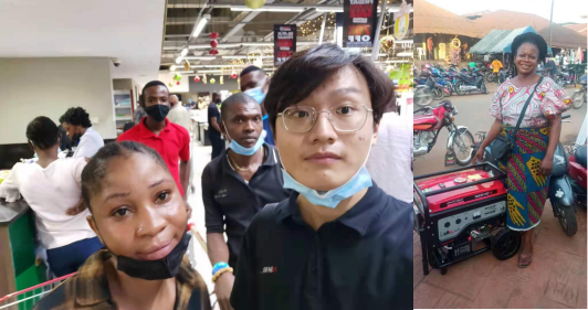 (中方戰(zhàn)友李懿與在尼商超渠道第一位用戶合影 ) (尼日利亞第一位鑫源發(fā)電機用戶)