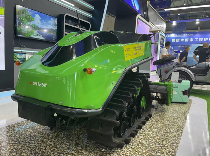 本次智博會(huì)鑫源新能源農(nóng)機(jī)展出的產(chǎn)品是自走履帶旋耕機(jī),它采用了無(wú)極變速電機(jī)以及納米硅鋰電池,續(xù)航能力。