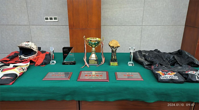 在捐贈儀式上,鑫源國際車隊捐贈了當(dāng)年的比賽服裝、靴子、以及在中國環(huán)塔拉力賽中獲得的獎杯、獎牌等。在這些賽場榮譽(yù)后面,還有許多無私奉獻(xiàn)、團(tuán)結(jié)協(xié)作,傳播人間真情的故事。